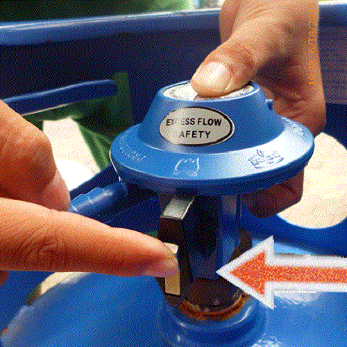 Bước 1: người hoạt động thực hiện xoay núm vặn ngược chiều kim đồng hồ theo chiều mũi tên chữ OPEN trên van gas, chú tâm bạn hãy chú ý mở đúng chiều để tránh làm gãy van gas hoặc gây nhầm lẫn khi cần khóa gas lại.